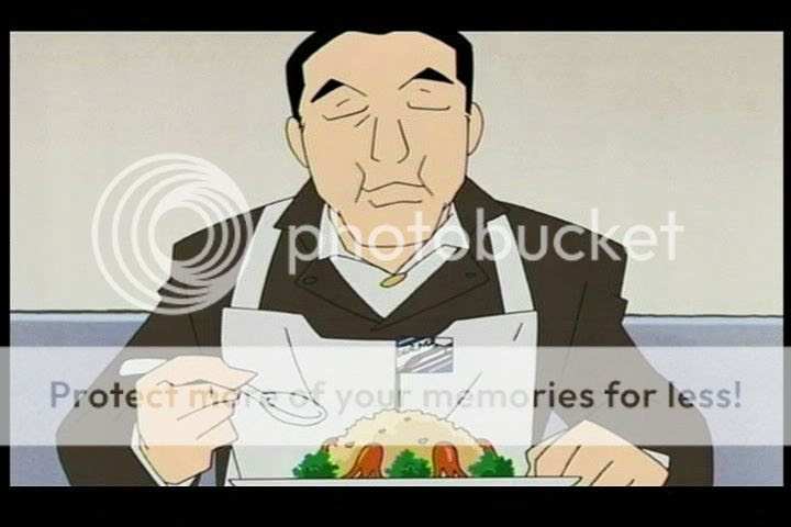 O episódio está em japonês puro, então abaixo vai um pequeno resumo do capítulo que peguei no Universo Otaku Aqui tenos o Owner comendo o Chahan, feito pela Naomi, enquanto ele narra a introdução do episódio. O engraçado é que ele erra na fala. Ao invés de fazer a tradicional narração “Toki no Ressha Denliner, Tsugi no Eki wa Kakô ka, Mirai ka...”, ele faz a narração do programa “Sekai no Shasô kara”, um documentário sobre trens de todo o mundo, exibido pela TV Asahi aos sábados. Por curiosidade, o ator Kenjirô Ishimaru (Owner) narra esse programa há vinte anos! Reparem na paródia do título também! Vejam como ficou uma gracinha a Naomi, versão anime. E o Momotaros, ficou igualzinho ao seriado. Aqui temos a Hana-san e o Ryôtarô Nogami. Ao lado, o Shin-chan, desesperado para entrar no banheiro, mas... Olha só onde foi aparecer! Esse Ryôtarô é azarado até em anime! Ao lado, Shin-chan se apresenta e diz que o seu trem preferido é a linha Tôbu-Isesaki Sen. Por curiosidade, Tôbu-Isesaki é uma linha aqui da província de Gunma. Eu sempre pego essa linha para ir da estação de Tatebayashi (Gunma) a Kuki (Saitama). Bom, mas deixa pra lá, ninguém vai saber mesmo como são os trens no Japão... Olha a cara do Momo, quando o Shin-chan confunde (de propósito) o nome imagin com “himajin”. Sabem o que é “himajin”? Uma pessoa desocupada. Ao lado, o lendário imagin BuruBuriZaemon (?), evocado pelo Momotaros. Shin-chan aproveita o momento em que Ryôtarô vai se transformar e gruda nele. Assim, Shin-chan também acaba se transformando. Ao lado, a apresentação dos dois: DEN-O: Ore, Sanjô! & SHIN-O: Ora, Sanjô! Bom, todo mundo já sabe a diferença, não? Aqui, o imagin que atacou a mãe do Shin-chan e ia fazer o “keiyaku” (contrato) com ela. Ao lado, o DEN-O erra o seu ataque. Olha onde vai parar a lâmina do Dengasher! Devido a todos os acontecimentos, Shin-chan acaba perdendo o horário do ônibus escolar. Pra mãe do Shin-chan não ter que levá-lo de bicicleta à escola, o Owner permite que Shin-chan volte no tempo, minutos antes do ônibus chegar. Ah, lembram que ele estava desesperado pra ir ao banheiro? É, não deu tempo... Todos reunidos no encerramento, anunciando a estréia do filme.